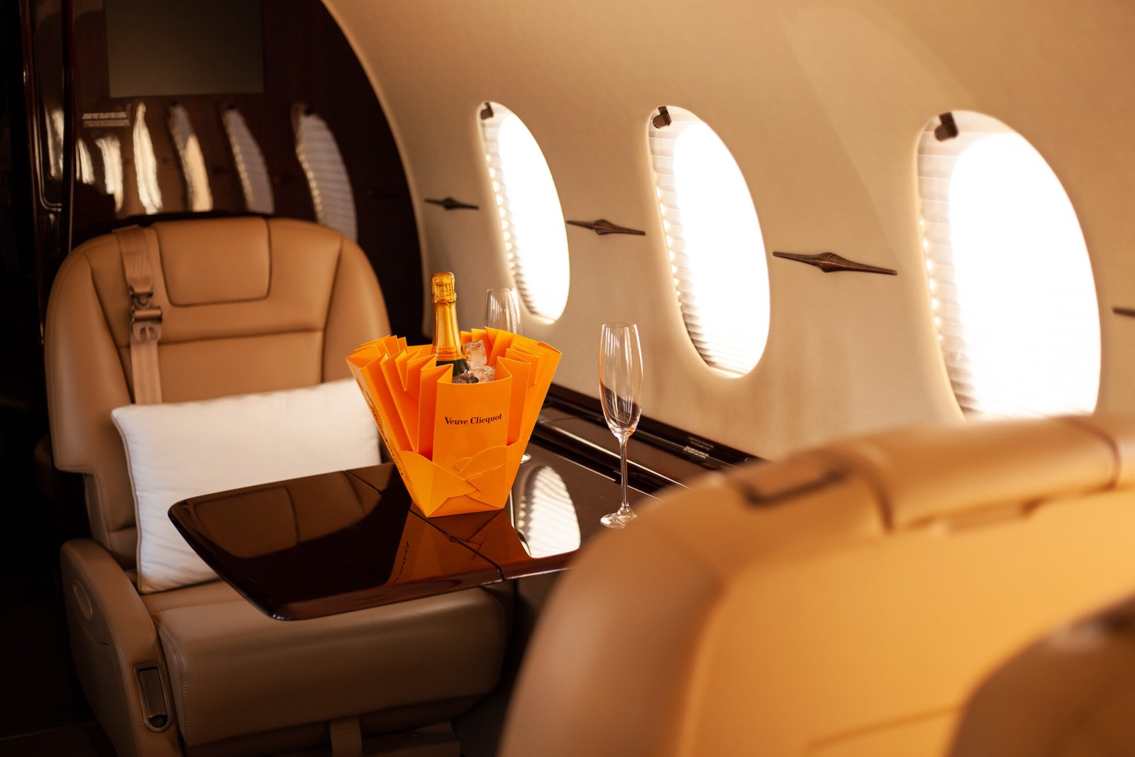 The cabin features a fully equipped galley, a luxurious lavatory, and reclining seats. Passengers can choose between a nighttime configuration with four beds and a daytime configuration with eight seats.